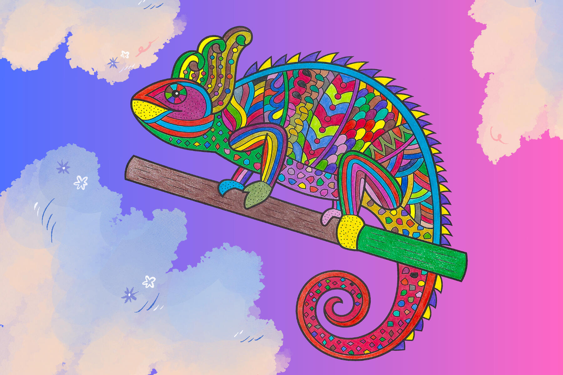 This is Lizzy the Gecko, a small, colorful creature with the brightest patterns in the jungle. Lizzy loved exploring, using her colors to blend in wherever she went. One day, she stumbled upon a part of the jungle that was dark and gray, where her colors didn’t blend in at all. At first, she felt out of place, but then she decided to stay as she was, lighting up the grayness with her vibrant colors. Soon, other animals came by, inspired by her bravery and brightness, and Lizzy learned that sometimes, standing out is exactly what the world needs.Question: