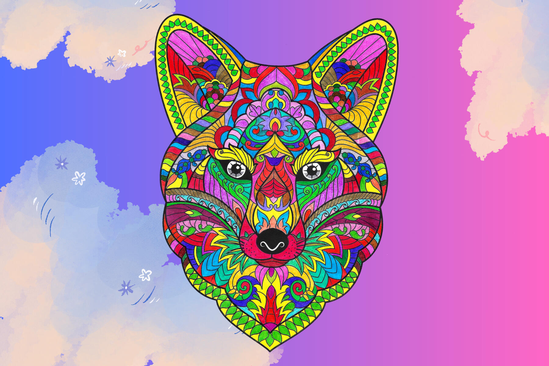 This is Flora, the curious wolf who loved exploring the forest to find hidden treasures. One day, Flora discovered a part of the forest she had never seen before—a dark, shadowy grove where the plants didn’t grow as colorful and bright. Feeling a little scared but very determined, Flora decided to bring her colors into the shadows to see if she could make the grove come alive. As she pranced and twirled, her colors lit up the trees and flowers, turning the dark grove into a magical rainbow forest. Flora learned that sometimes, just by being brave and exploring new places, she could make even the darkest corners shine.Question:
